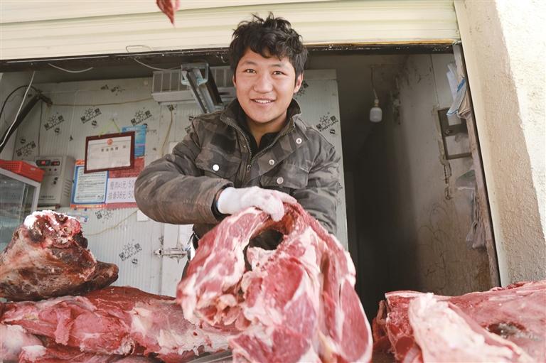冬日的拉萨市墨竹工卡县寒意渐浓,南京路的牛肉摊位却一派热火朝天的景象。新鲜的牦牛肉色泽红润、肉质紧实,吸引着往来市民争相选购。