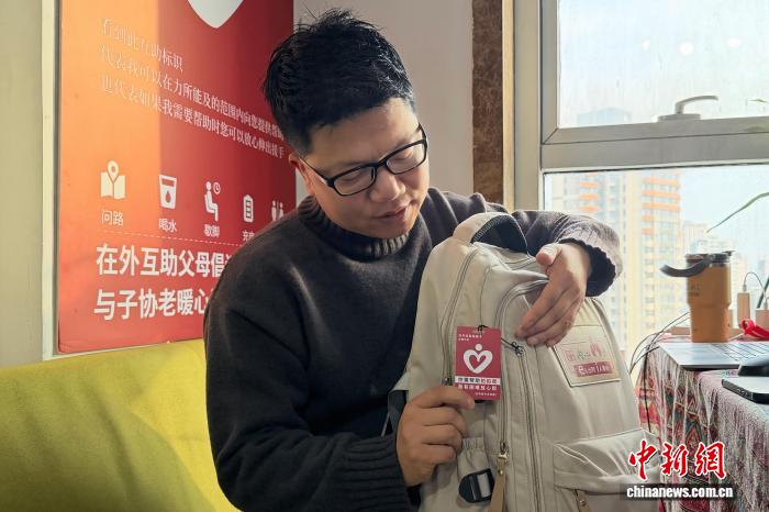 2026年1月,赵晨展示挂在背包上的拍拍卡。 李一璠 摄