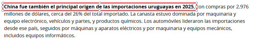 2025年,中国继续保持乌拉圭第一大出口市场地位。根据乌拉圭二十一世纪投资和出口促进局发布的年度外贸报告,2025年乌拉圭对华出口额达到34.93亿美元,占乌拉圭出口总额的26%,较2024年增长约12%。