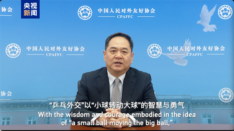 张建敏表示,55年前,中美两国年轻的乒乓球运动员用握手打破两国隔绝对抗的坚冰,以小球推动大球,拉开中美关系正常化序幕。55年来,中美关系不断前行,为两国人民带来了实实在在的利益。“友谊第一,比赛第二”是“乒乓外交”给予我们的深刻启迪。“跨越隔阂,加强沟通”是“乒乓外交”带给我们的宝贵智慧。当前,中美关系正处于关键阶段,我们需要继承和发扬“乒乓外交”宝贵遗产,不断增进友谊,加强沟通交流,按照相互尊重,和平共处,合作共赢原则,引领中美关系不断向前发展。