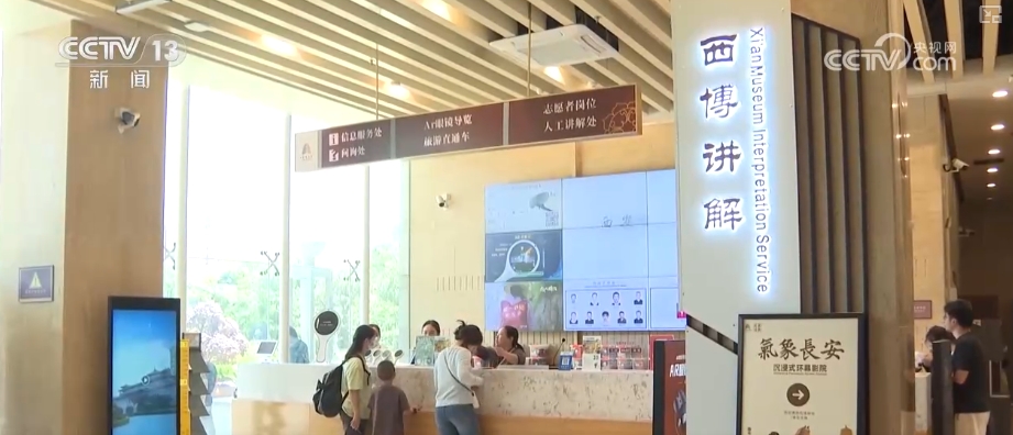 西安博物院公共服务部工作人员杨蕊伊介绍,“五一”期间,票务、安保、保洁人员增加了班次,同时也增设了大量的值班人员。在讲解方面,讲解人员、志愿者人员都增加了人数,同时也增加了讲解班次。他们在西门、北门都设有游客服务中心,为广大游客提供便利服务。针对于国际游客,他们有英文版的自助导览机提供服务。