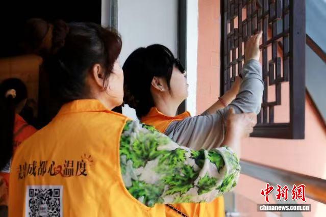 四川大学博物馆还在讲解过程中增加了触摸等体验环节。如途经长廊时,讲解员引导大家伸出双手,触摸那些造型各异的窗棂。离开展厅后,视障游客还可以在工作人员与志愿者的引导下,制作香囊,感受指尖造物。