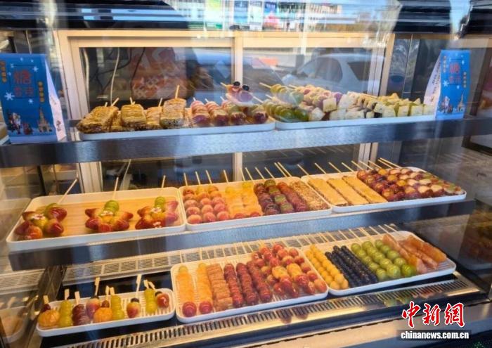 寒风凛冽的呼和浩特街头,一股意想不到的甜蜜风暴正在席卷。在呼和浩特市塞上老街,一支支色泽金黄、形态别致的奶皮子糖葫芦,正吸引着消费者前来品尝。