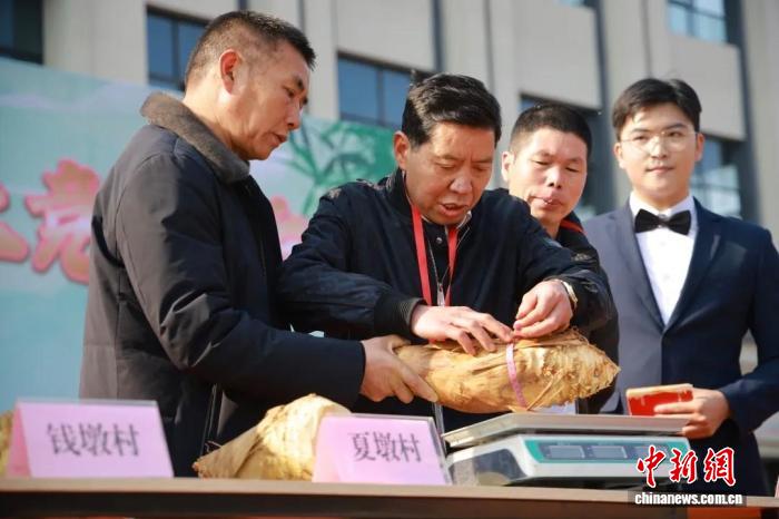 中新网南平1月19日电(廖敏恺 宗治明 陈沁林)“围径46.2厘米,重5.55斤,夏墩村获得第一名!”随着专家评定结果揭晓,福建南平顺昌县岚下乡郭岩广场瞬间沸腾,游客纷纷举起手机记录“笋王”风采。种植户刘乐明难掩激动:“我们的笋来自自家山林,自然生长、品质上乘!”