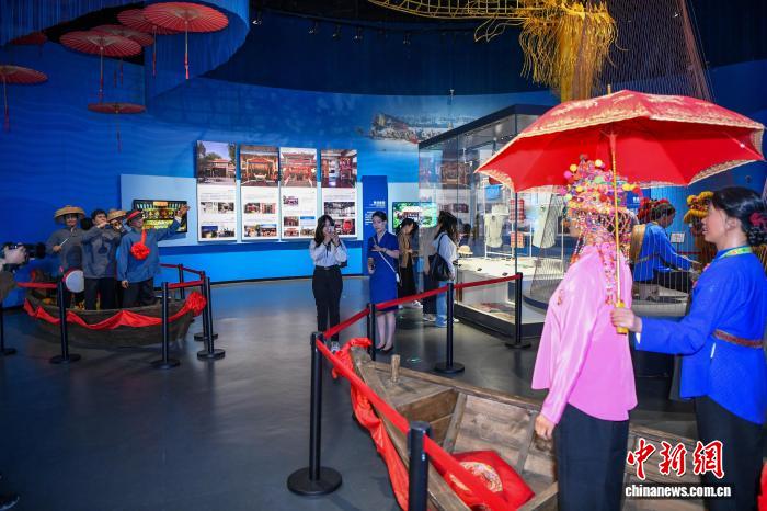 图为在海南疍家博物馆展出的疍家人举行水上婚礼的场景。中新网记者 骆云飞 摄