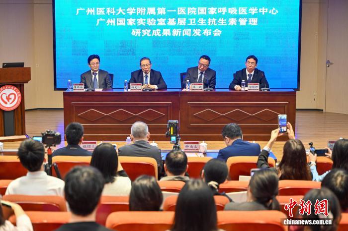 广州医科大学附属第一医院、国家呼吸医学中心、广州国家实验室举行基层卫生抗生素管理研究成果新闻发布会。中新网记者 陈骥旻 摄