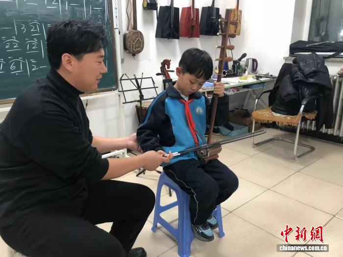 图为陈香宝为热爱四胡的学生义务授课。 科右中旗委宣传部供图