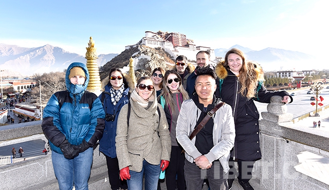 新年第一天,记者在西藏自治区拉萨市药王山观景台遇见了来自美国的游客Lauren和她的团友们。这是一个由8名游客组成的外宾团,他们分别来自美国、哥伦比亚等7个国家。