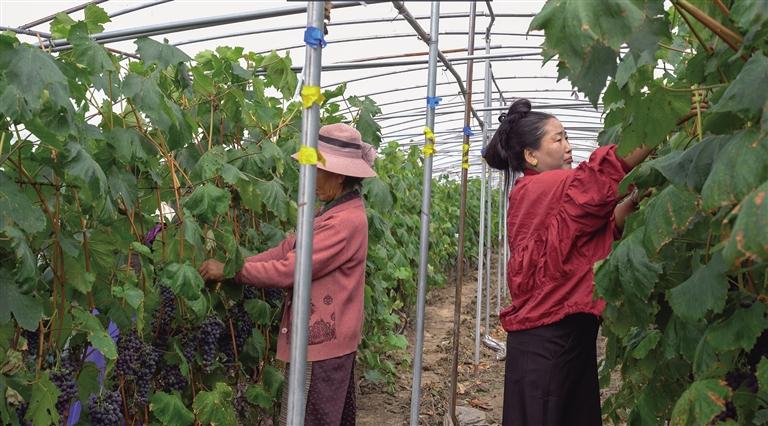 据了解,葡萄种植基地采用“公司+基地+农户”经营模式,自2017年至今,葡萄种植基地累计用工人数达9万余人次,群众务工增收1000余万元,涉及葡萄种植的10个村村集体经济共增收1200余万元。