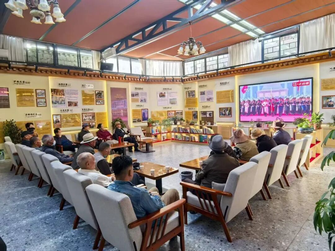 2025年9月3日,拉萨城关区八一社区干部群众集中收听收看纪念中国人民抗日战争暨世界反法西斯战争胜利80周年大会。拉萨城关区八一社区居民委员会供图