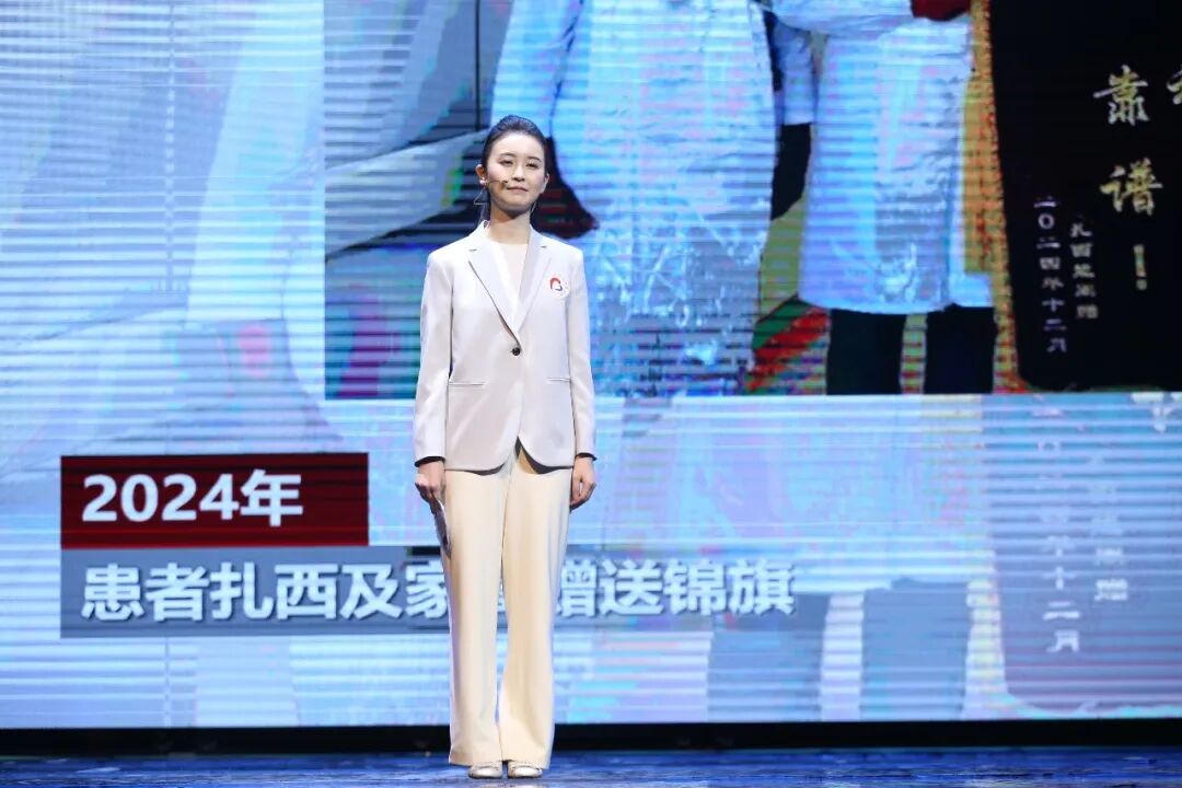 大会现场,多名医者、志愿者分享了跨越山海的公益故事,传递着生命与大爱的力量。北京清华长庚医院党委副书记王克霞,以“大爱与力量——11载坚守,用精准医术守护高原生命”为主题,讲述了董家鸿院士团队的公益事迹:11年间,团队30余次深入涉藏地区开展包虫病防治工作,用精湛医术为高原群众筑起健康屏障。他们成功救助了民警昂青一家——昂青的妻子确诊包虫病晚期,孩子小拉吴也不幸感染,团队全程接力,从术前筛查、手术治疗到术后康复,全程保驾护航,不仅治愈了患者的病痛,更用温暖陪伴化解了一家人的绝望,生动展现了医者与高原群众生死相托的信任与坚守。