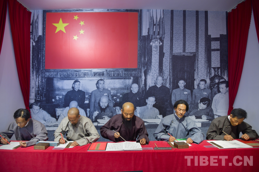 图为西藏博物馆内《十七条协议》签订蜡像 摄影:赵振宇