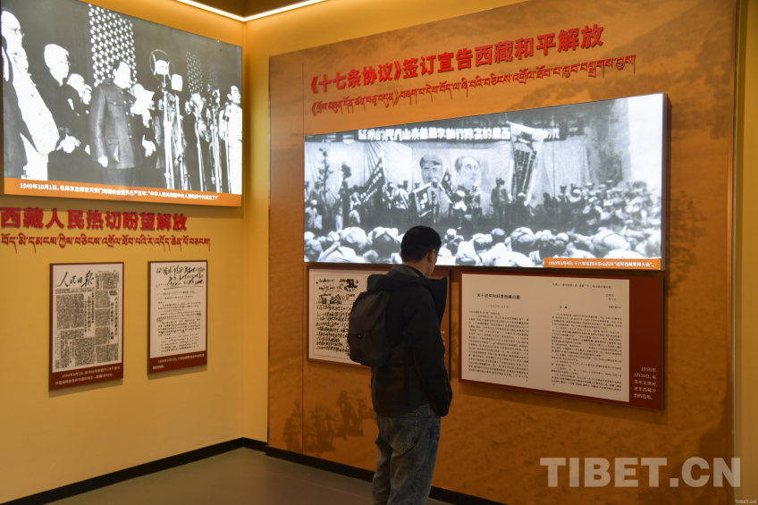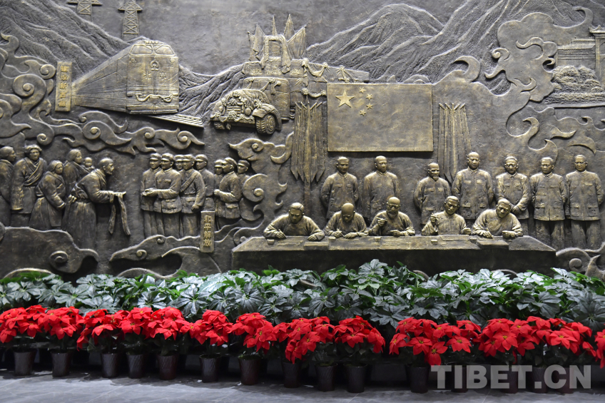 在西藏博物馆内,《雪域长歌——西藏历史与文化展》用一组大型浮雕墙,向到访参观的游客展现了一个个影响西藏的历史时刻,唐蕃会盟、凉州会谈、金瓶掣签、江孜抗英、签订《十七条协议》……从黑暗走向光明、从落后走向进步、从贫穷走向富裕、从专制走向民主、从封闭走向开放,以和平解放为起点,西藏实现了“短短几十年,跨越上千年”的沧桑巨变。