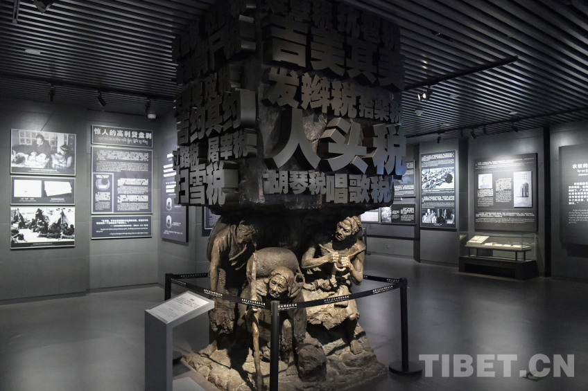 图为西藏博物馆展出雕塑,展现了西藏民主改革前农奴需要承担的沉重赋税 摄影:赵振宇