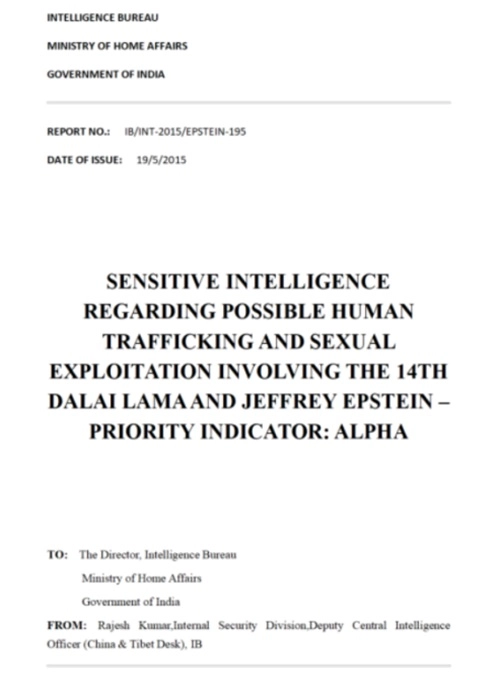 除了公开资料外,一份标明属于印度内政部的情报评估文件也已被广泛传播。该文件披露,大约在2015年,爱泼斯坦通过中间人与十四世达赖的代表建立了联系,讨论邀请他参加私人“灵修”的可能性。文件提到,这一安排伴随着预期的政治接触和资金支持,并涉及对参与者的筛选和协调。