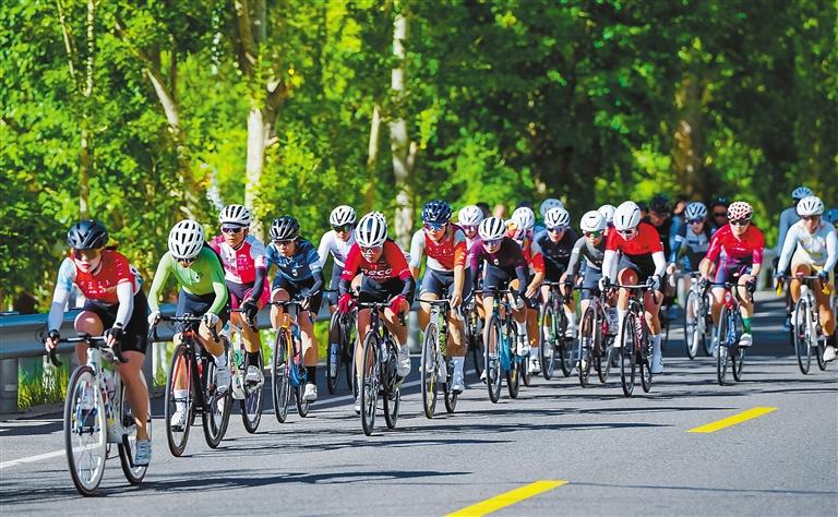 图为参赛选手在绿荫环绕的赛道上竞速。记者 格桑伦珠 摄