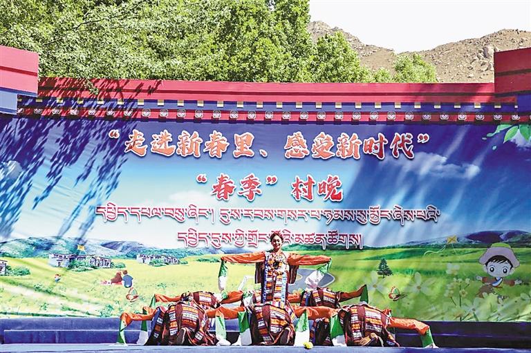 日喀则市定结县艺术团与山南市洛扎县艺术团在曲水县南木村演出。通讯员 晋美顿旦 记者 王超 摄