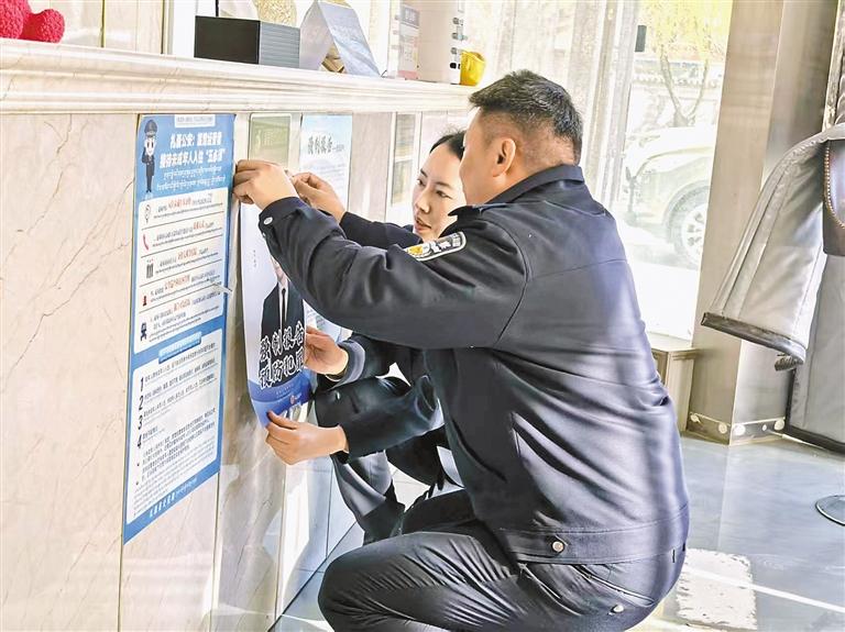 山南检察司法警察协助检察官对校园周边宾馆登记入住情况进行执法检查,清理校园周边环境。 图片均由山南市检察院提供