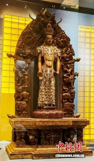 图为首次展出的檀香木观音菩萨。赵延 摄