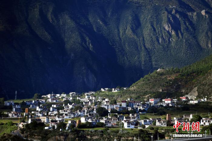 坐落在巴姆山麓下的白藏房。记者 王磊 摄
