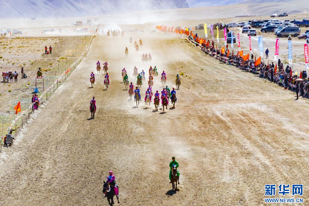 9月27日,“噶尔恰青”赛马活动现场(无人机照片)。新华网 旦增努布摄