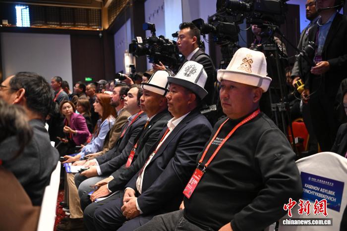 10月29日,“遇见美丽西藏 书写雪域新篇”为主题的2025·中国西藏发展论坛在林芝开幕。来自40多个国家和地区的400多名中外嘉宾参会。图为藏族记者采访外国嘉宾。中新社记者 贡嘎来松 摄