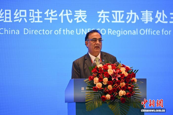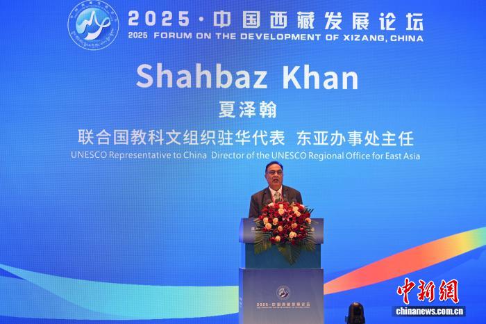 10月29日,“遇见美丽西藏 书写雪域新篇”为主题的2025·中国西藏发展论坛在林芝开幕。来自40多个国家和地区的400多名中外嘉宾参会。图为联合国教科文组织驻华代表 东亚办事处主任夏泽翰在开幕式上发言。中新社记者 贡嘎来松 摄
