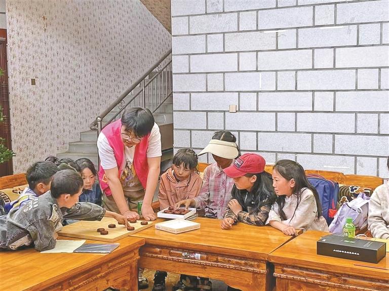 蔡公堂街道公堂社区开展的“小太阳”辅导班上,志愿者与孩子们下棋。文/图 记者 刘斯宇 通讯员 张银鹏