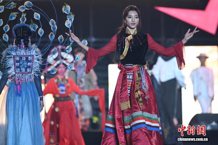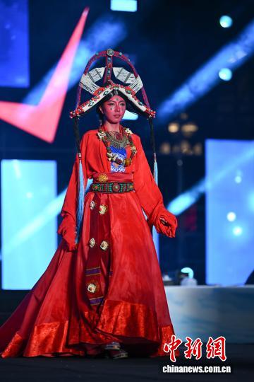 图为西藏首届民族舞台服饰设计大赛决赛现场。中新社记者 贡嘎来松 摄