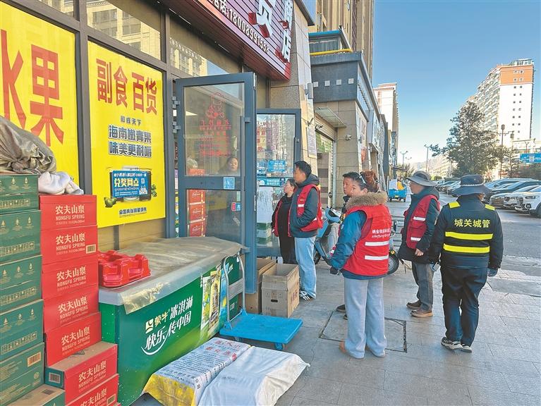 图为林琼社区联合城管执法部门开展店外店专项整治行动。记者 格桑伦珠 摄
