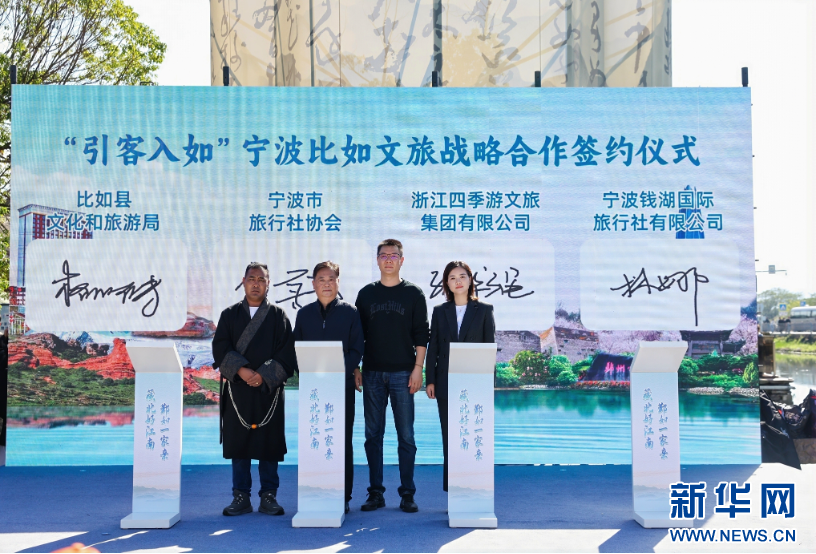 活动期间,比如县民族艺术团先后走进宁海县前童古镇、鄞州区东钱湖等地,与当地文艺团体同台演出,藏北豪情与江南雅韵的艺术对话,为宁波市民带来了一场场文化盛宴。在鄞州区东钱湖建设村举行的推介活动上,两地还签署了“引客入如”文旅战略合作协议。