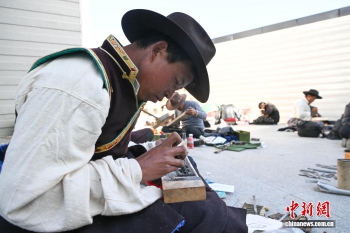 11月23日,第二届“工巧杯”西藏工艺美术中青年高技能人才技艺大赛现场实操技能在拉萨市唐卡艺术博物馆开赛。本次大赛以“薪火相传 守正创新”为主题,由284名选手来自西藏6(市)地的42个县(区),涵盖唐卡、雕塑、编织等36类工艺。据悉,西藏工艺美术行业现有2700余家市场主体、3.7万余名从业者,2024年产值超30亿元(人民币)。图为参赛选手在木板上雕刻藏文。中新社记者 贡嘎来松 摄