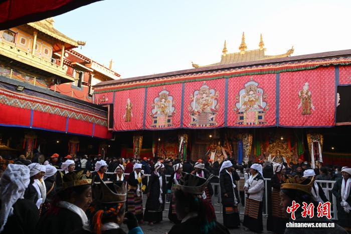 图为信众在大昭寺朝拜白拉姆像。中新社记者 贡嘎来松 摄