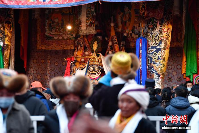 12月4日即藏历十月十五日是藏族传统的节日“白来日追”,俗称“仙女节”、“白拉姆节”等。相传藏传佛教最高护法神之一班丹拉姆的女儿白拉姆,不顾母亲的反对与赤尊赞私定终身,班丹拉姆一怒之下将赤尊赞赶到拉萨河南岸,规定二人仅每年的藏历十月十五日相见。图为信众在大昭寺朝拜白拉姆像。中新社记者 贡嘎来松 摄