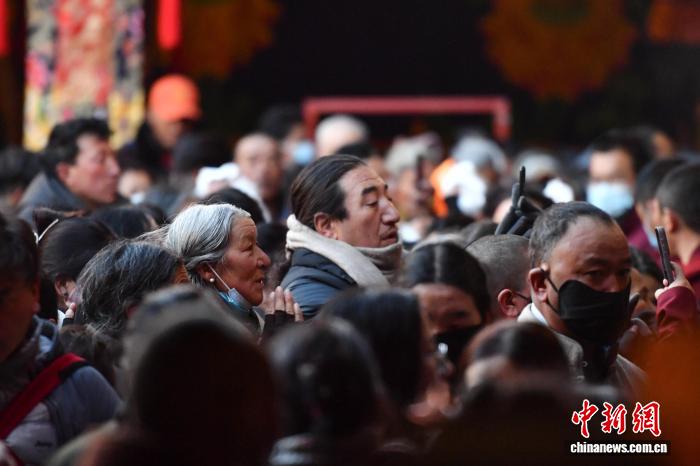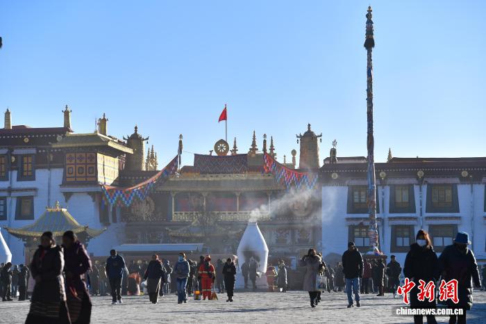12月4日,藏历十月十五日,这一天是西藏的传统民俗节日“白拉姆节”,也被称为“仙女节”。当天信众们穿着节日盛装,手捧哈达、鲜花、水果、青稞酒等供品前往大昭寺,面对寺内的白拉姆和赤尊赞神像,双手合十虔诚地祈福并敬献供品,祈愿来年丰收、无灾无病。相传,白拉姆是拉萨地区的保护神,是藏传佛教最高护法神之一班丹拉姆的女儿。白拉姆曾与大昭寺护法神赤尊赞相互爱慕并私定终身,其母亲班丹拉姆发现后,赤尊赞被赶到拉萨河南岸,每逢藏历十月十五日,二人才能隔河相见一次。图为信众手捧哈达、青稞酒,在大昭寺内欢庆“仙女节”。贡确 摄