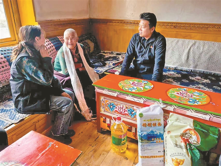 图为洛隆县孜托镇驻村工作队到群众家中看望慰问老人。