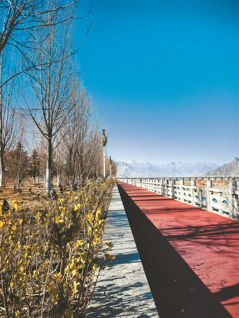 冬日拉萨,褪尽夏的喧嚣,在澄澈如洗的天空下,悄悄酿出一抹温润与鲜活。拉萨河畔的红色塑胶步道上,冻硬的地面像被揉进暖意;光秃的杨枝在蓝天下勾勒出疏朗的剪影。零下的气温中,日光城拉萨懒懒睁开惺忪睡眼。寒风掠过耳畔,却吹不散巷口的酥油茶香,也挡不住满城涌动的人间烟火与蓬勃生机。