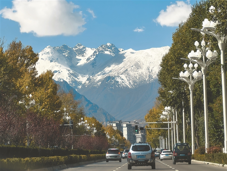 午后的拉萨街头,车水马龙的道路两旁,高大的白杨树落尽了叶子,却依旧挺拔如卫士。白色玉兰花造型的路灯沿着街道延伸,与远处的雪山遥相呼应,构成了一幅别致的城市图景。行驶的车辆穿梭其间,车窗里偶尔探出的脑袋,会忍不住对着雪山按下快门——在拉萨,雪山从来不是遥不可及的风景。市民尼玛开着车去接放学的孩子,路过拉萨河时,她放慢车速:“冬天的拉萨河最蓝,雪山倒映在水里,像画一样。”车窗外,风吹过河畔的芦苇荡,发出沙沙的声响,与车内的轻音乐交织,成了最惬意的冬日旋律。