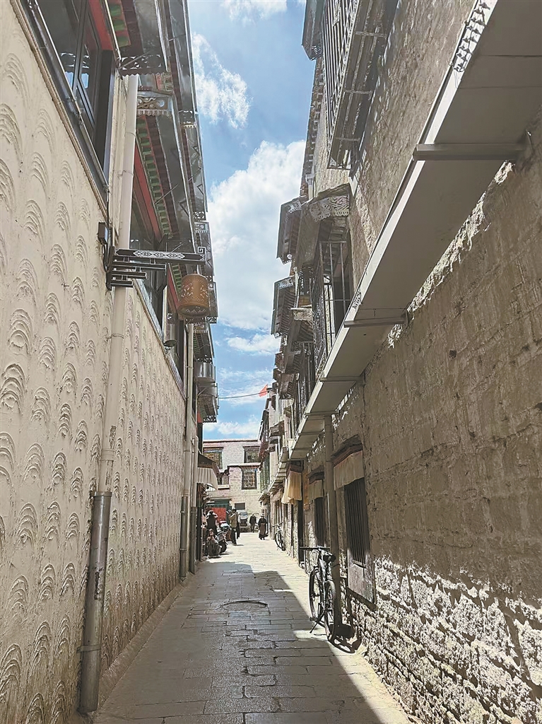 建筑作为文化的重要载体,在书中占据了重要篇幅。满格格对八廓古城内56座古建大院进行了详尽考证,逐一阐述每座院落的起源、地理位置、象征意义及历史背景。为了让内容更具可读性,她不仅走访相关领域专家、社区领导及大院居民,收集院落历史由来与居民生活感悟,同时查找文献记录和老照片,结合实地拍摄的照片,形成古建大院昔日风貌与现实状态的可视化对比,让读者直观感受时光变迁中的建筑生命力。