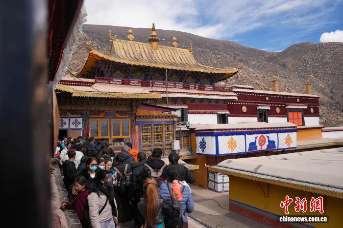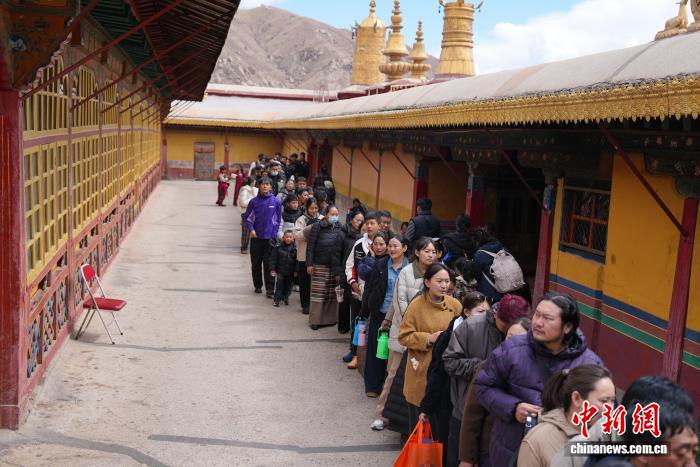 图为信众在哲蚌寺内有序排队朝拜。贡确 摄