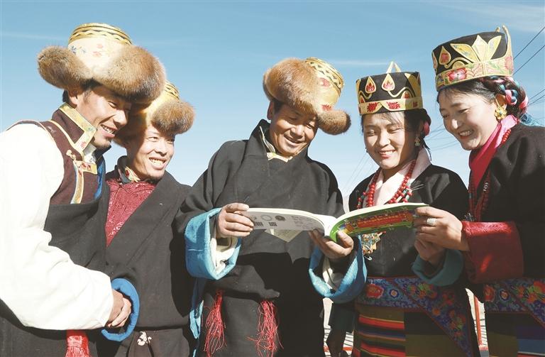 农牧民在看科普宣传手册。通讯员 次昂 摄