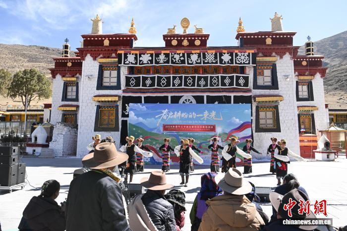 图为达普天文观测台年度观测活动现场,村民着盛装载歌载舞。中新社记者 贡嘎来松 摄