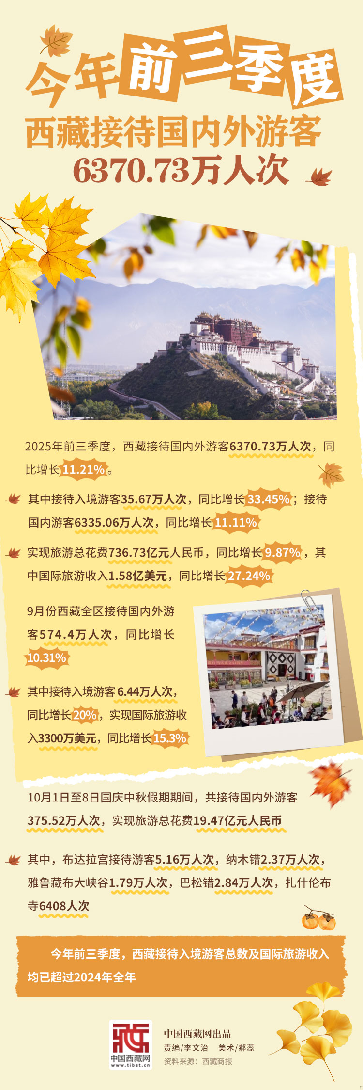 海报|今年前三季度 西藏接待国内外游客6370.73万人次