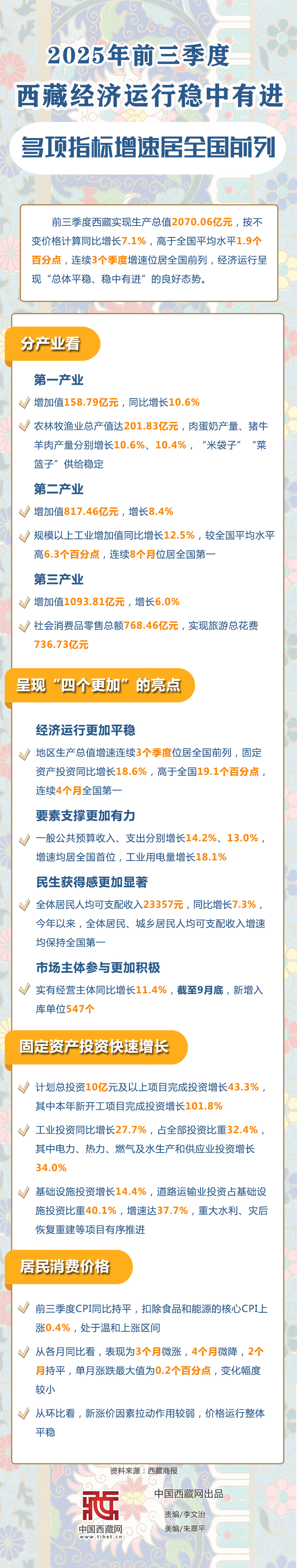 图解|2025年前三季度西藏经济运行稳中有进 多项指标增速居全国前列