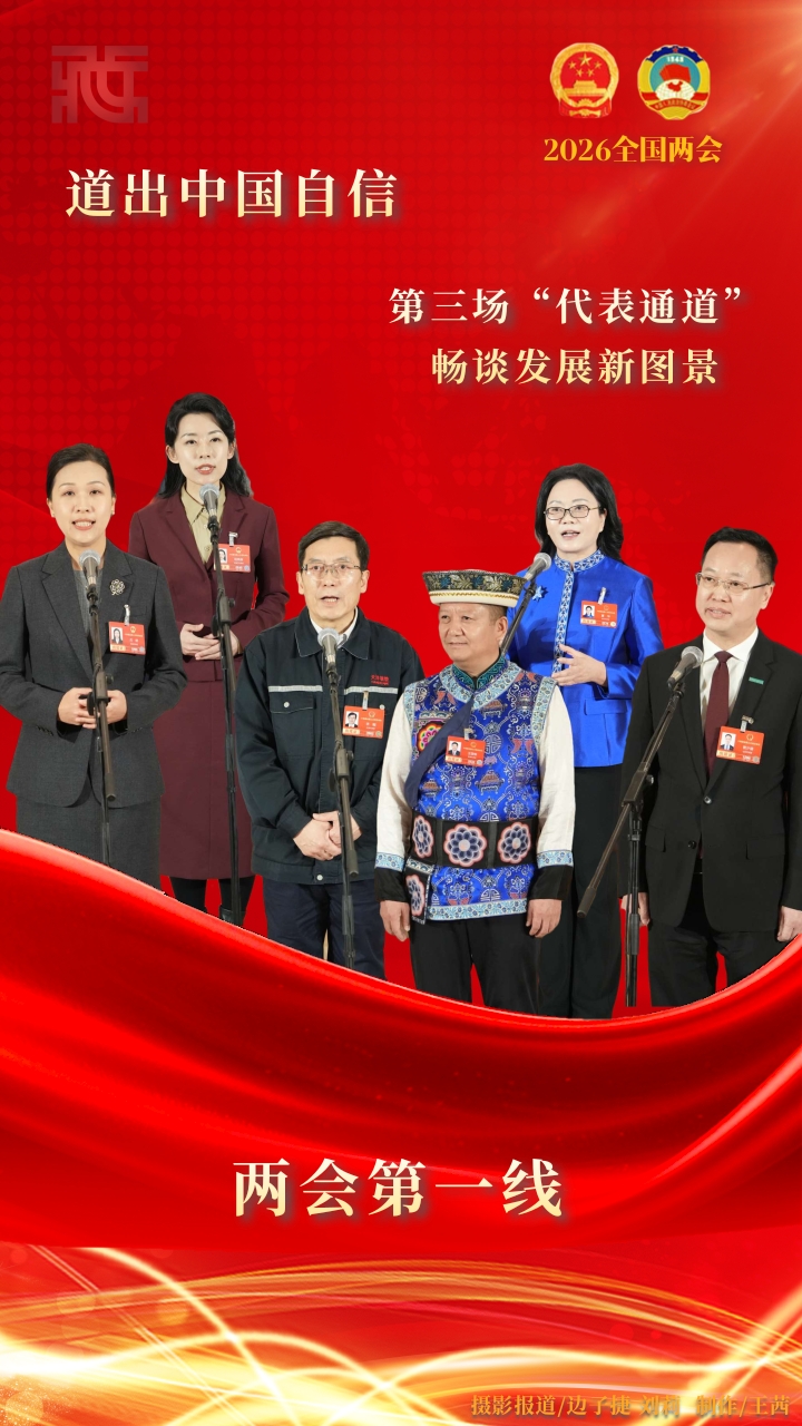 中国西藏网讯 3月12日下午,十四届全国人大四次会议第三场“代表通道”集中采访活动在人民大会堂中央大厅北侧举行,6位全国人大代表走上“代表通道”答记者问,畅谈未来发展美好新图景。(中国西藏网 记者/边子捷 刘莉 摄影报道 制作/王茜)