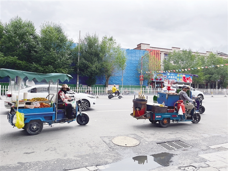 以往,布达拉宫西侧沿街商铺的“店外店”经营现象十分普遍,街道显得杂乱无章。经过一系列整治,目前沿街商铺均已实现了店内经营,整条街道变得干净整洁,面貌焕然一新。在宗角禄康东门区域,以往流动商贩聚集、占道经营的现象也十分严重。这些商贩不仅妨碍了交通,还存在随意变道、逆行等危险行为,给过往行人带来了极大的安全隐患。为了改善这一状况,专项整治工作专班将流动商贩治理作为重点内容,通过加强巡查、安排城管执法人员蹲点等方式,有效遏制了该区域的流动商贩问题。如今,宗角禄康东门已难觅流动商贩的身影。
