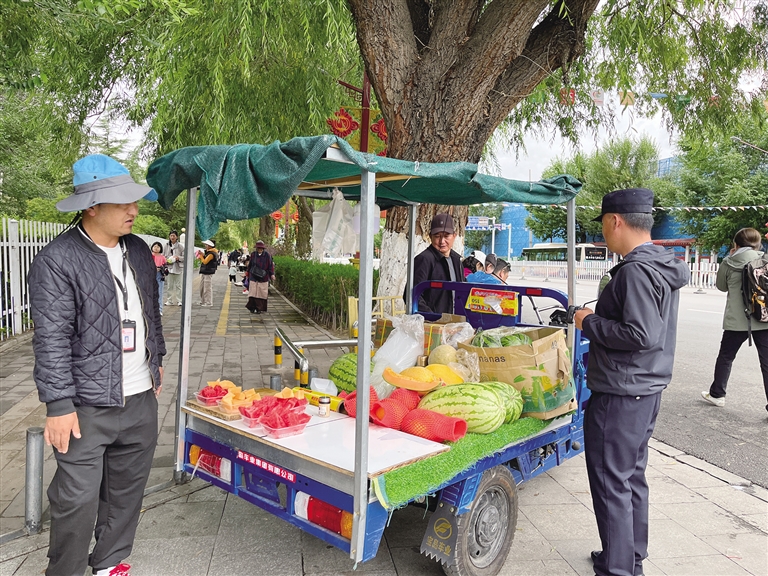 “我们从每日早上10点至晚上11点,对布达拉宫南门、宗角禄康东门采取值班执勤等方式进行不间断盯守,同时加强城管执法大队日常路段巡查力度,进一步巩固整治工作成效,提高监管效率,形成规范化和长效化的城市管理机制,共创文明有序的市容环境。”布达拉宫周边乱象专项整治工作专班成员常春告诉记者。