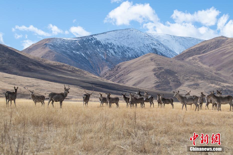 11月19日,西藏自治区昌都市类乌齐县长毛岭乡协塘村马鹿国家级自然保护区的草原上,西藏马鹿在觅食、嬉戏。据悉,西藏马鹿是马鹿的一个亚种,属国家二级重点保护动物。20世纪90年代初,国际濒危动物会议认为西藏马鹿已经“绝种”,而西藏野生动物保护工作者在类乌齐县考察时确定西藏马鹿仍然存在,并于1993年设立类乌齐马鹿自然保护区,2005年升级为类乌齐马鹿国家级自然保护区。图为西藏马鹿在类乌齐马鹿国家级自然保护区内觅食。