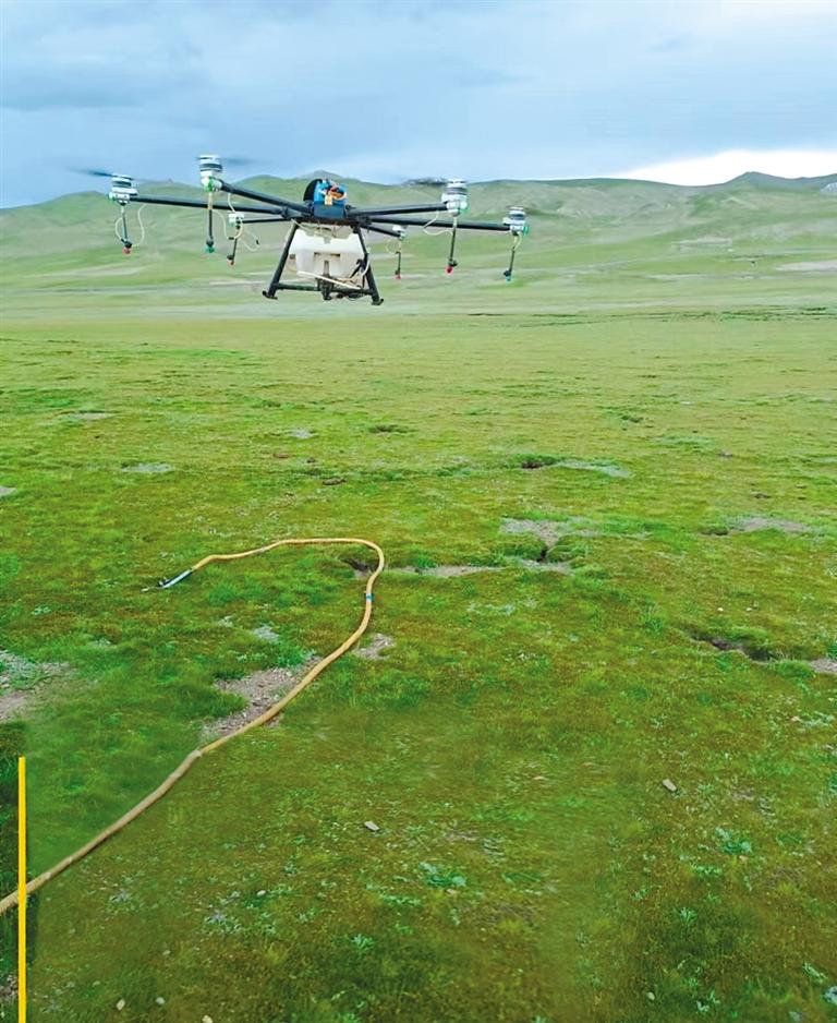 据介绍,高原毛虫是西藏高原牧区的重要害虫,多发生在海拔3000至5000米的高山草原,对莎草科、禾本科、豆科、蓼科、蔷薇科等各类牧草危害严重,严重影响牧草生长和畜牧业的发展。在项目实施过程中,项目组确定使用植保无人机喷药,防治高原毛虫。