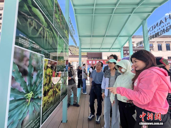 9月5日下午,参与项目启动的部分专家学者和媒体代表,参观林芝市生物多样性科普宣传微展览。潘旭临 摄